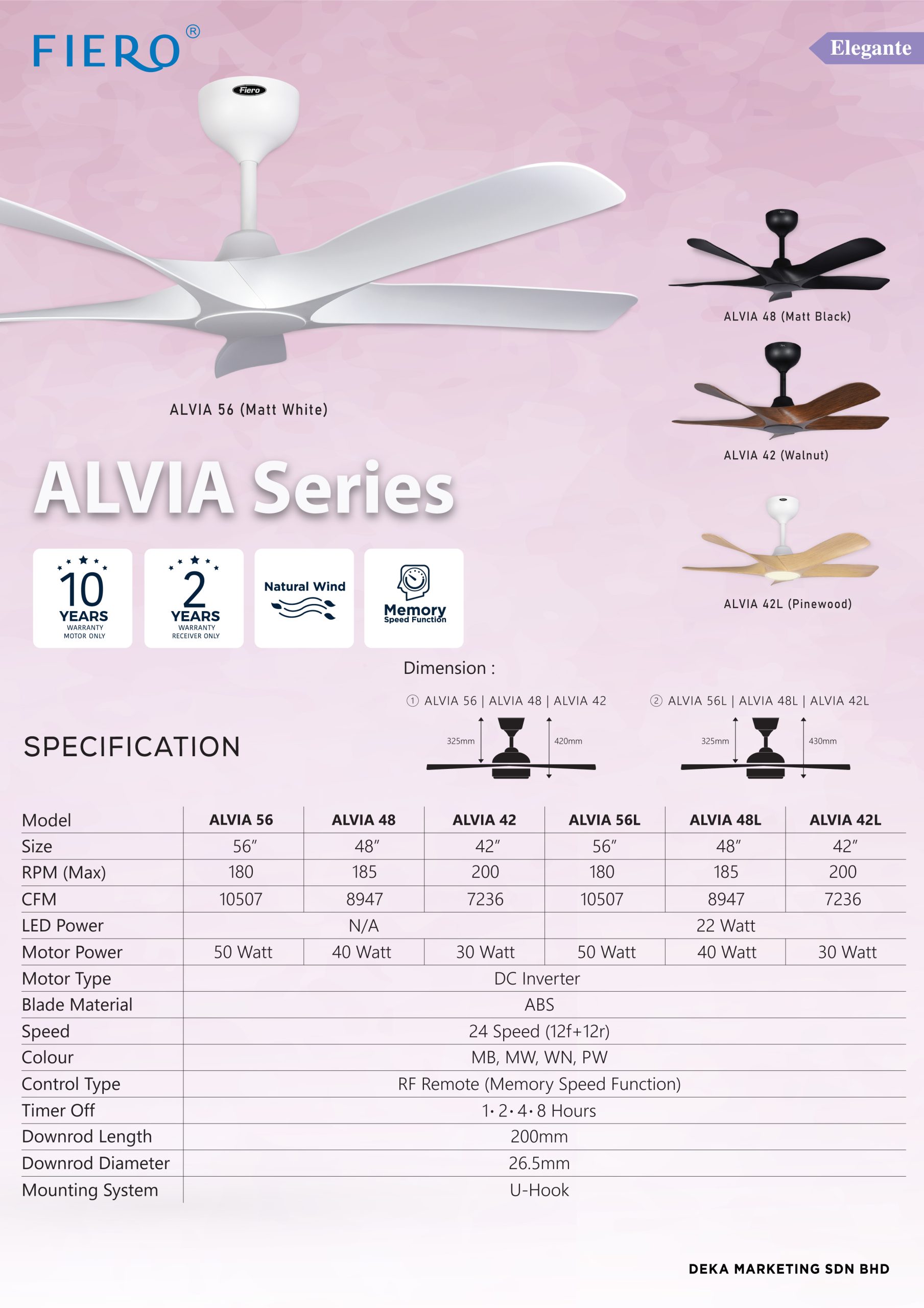 FIERO ALVIA 42 & 42L LED Ceiling Fans β Compact Five-Blade Cooling with Optional LED