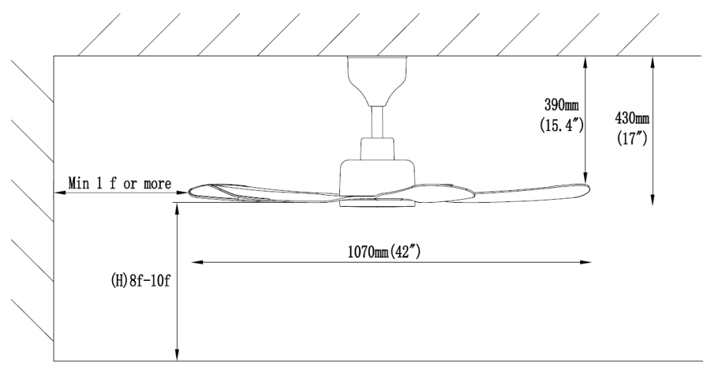The included RF remote control allows users to select multiple speed levels, activate turbo mode for quick cooling, use reverse airflow for seasonal circulation, or set timers (1/2/4/8 hours). Features like Natural Wind mode and Memory Speed recall provide extra convenience.