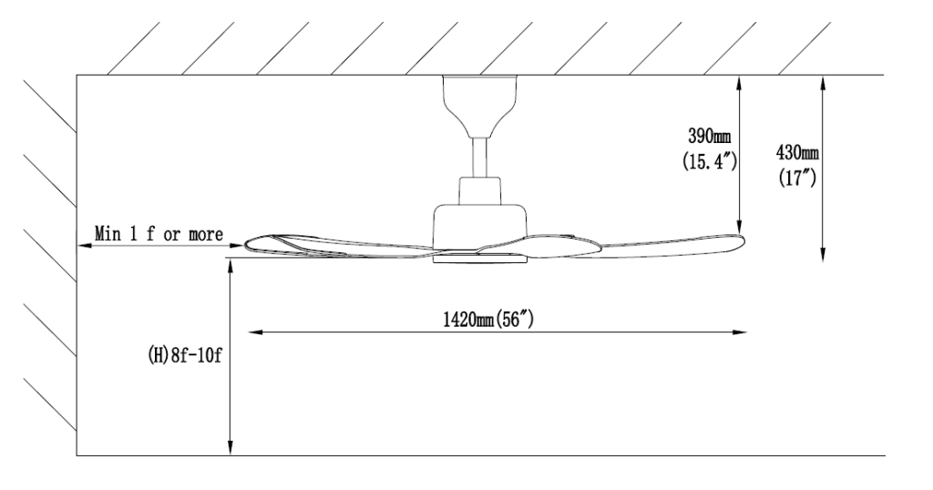 Its sleek five-blade design combines style with powerful cooling. - What room size suits Aston 56?